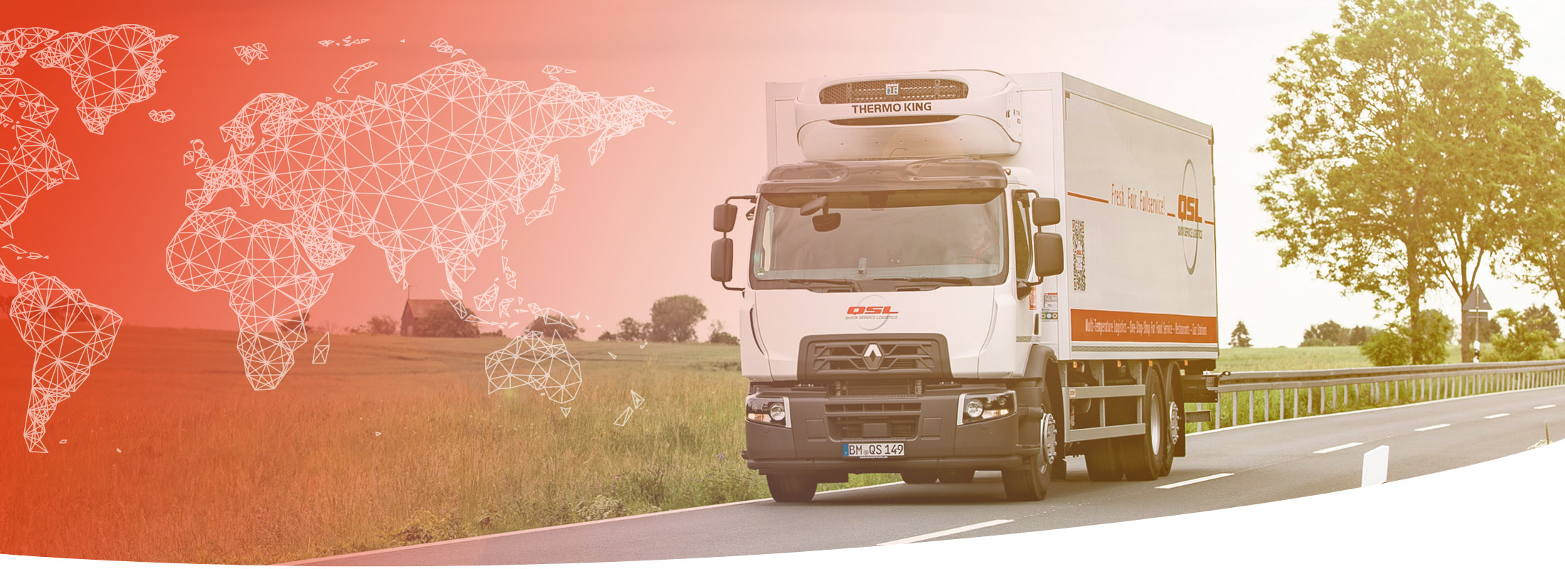 QSL CARGO jest specjalistą w transporcie kompletnych lub częściowych ładunków w warunkach temperatury kontrolowanej. Naszą podstawową kompetencją jest transport produktów spożywczych. Naszą pasją jest logistyka świeżej żywności. W obejmującej całą Europę sieci QSL nasi wysoko wykwalifikowani kierowcy są codziennie w drodze z najnowocześniejszą flotą pojazdów z fukcją multi-temperatur. Czy to transport z magazynu do magazynu, czy z magazynu do klienta: ze 130 własnymi ciągnikami siodłowymi i 1200 pojazdami naszej siostrzanej firmy Meyer Logistik obsługujemy relacje w całej Europie. W naszej centralnej dyspozytorni zbiegają się wszystkie nici, dzięki czemu w interesie naszych klientów obejmujemy cały zakres transportu, pojazdy i ramy czasowe.